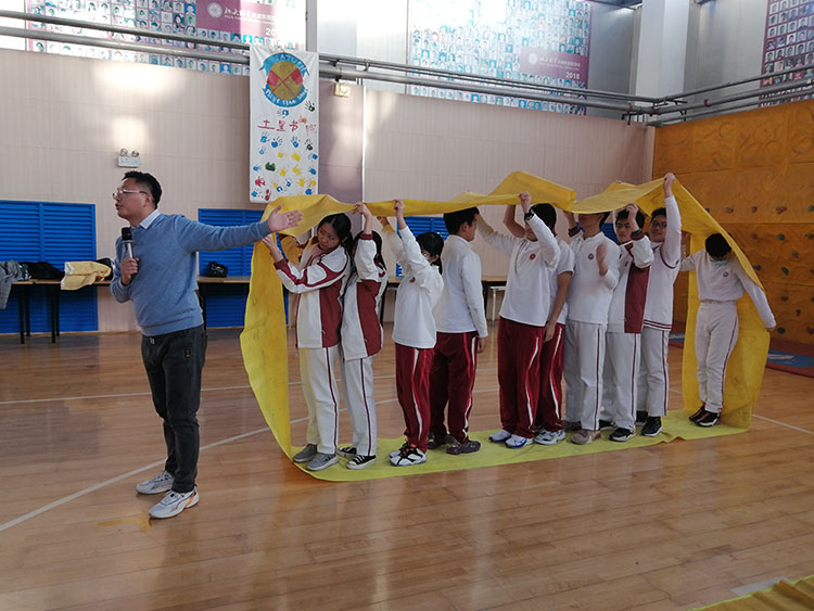 活动开始,带队老师先组织同学们通过抓手指和身体按摩等热身运动,让大家把注意力快速集中到活动中,之后以班级为单位进行分组。