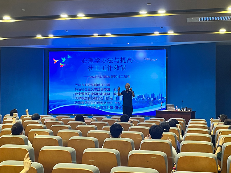 听心教育走进滨海新区开展“心理学方法与提高社工工作效能”社工培训主题讲座,主讲人刘援朝老师。