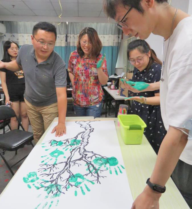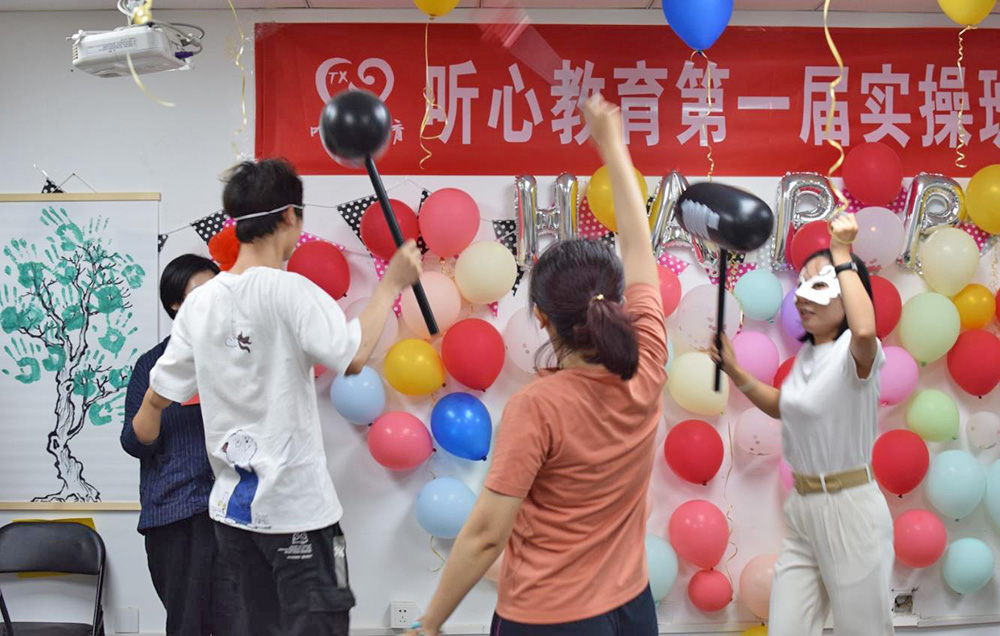 毕业典礼重要的一环就是学员自己编排心理剧,在过程舒缓的音乐中学员们做梦、绘画、游戏,在演出中体验或重新体验自己的思想、情绪、梦境及人际关系,伴随剧情的发展,在安全的氛围中探索、释放、觉察和分享内在自我。