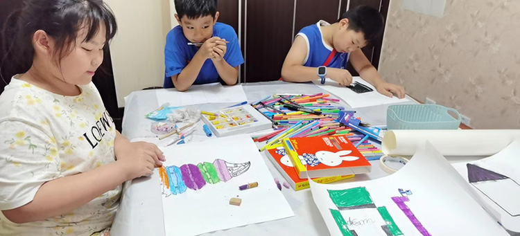 学生在有限的空间(纸张)呈现完整的表现,画者可以客观的观看自己的作品,将潜意识内压抑的感情与冲突呈现出来,并且在绘画的过程中获得抒解与满足,而达到评估与疗愈的效果。对此,听心教育携手翰泽书画开展为期三周的儿童心理成长夏令营。